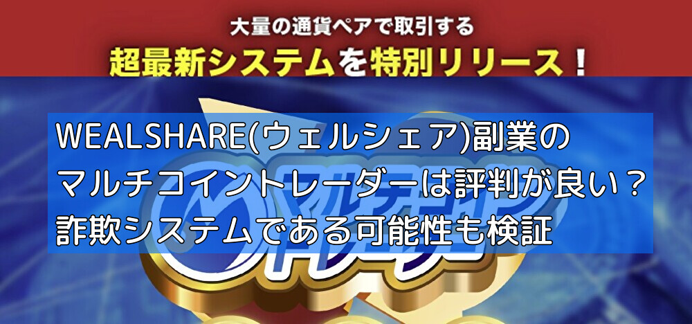 WEALSHARE(ウェルシェア)のマルチコイントレーダー公式サイトで評判や口コミが公開されていましたので、ご参考下さい。